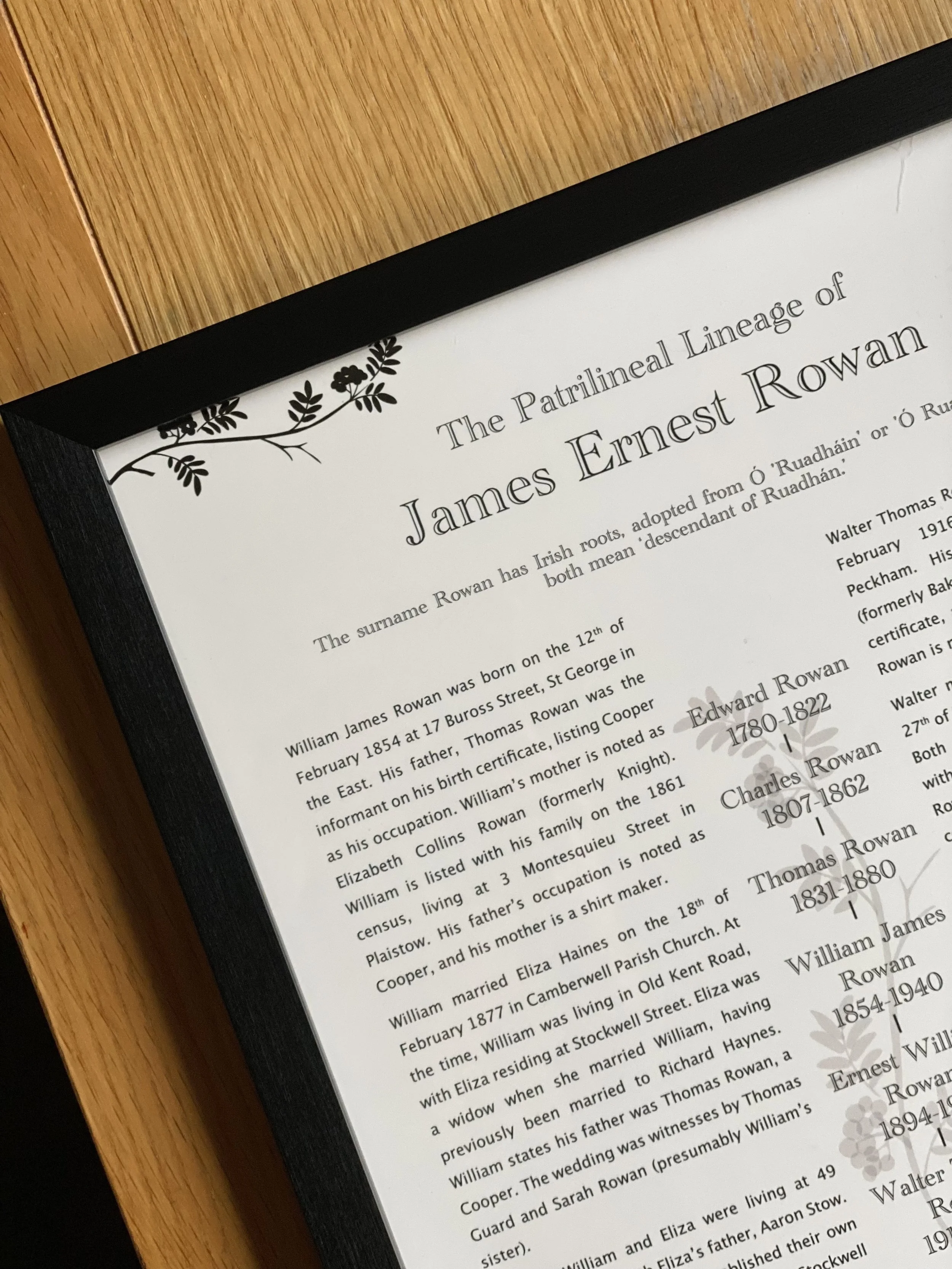 Your patrilineal line carefully researched back to at least 1800, and beautifully printed on A3 Giclée paper. A chance to honour generations of father’s before you and celebrate your family’s story.