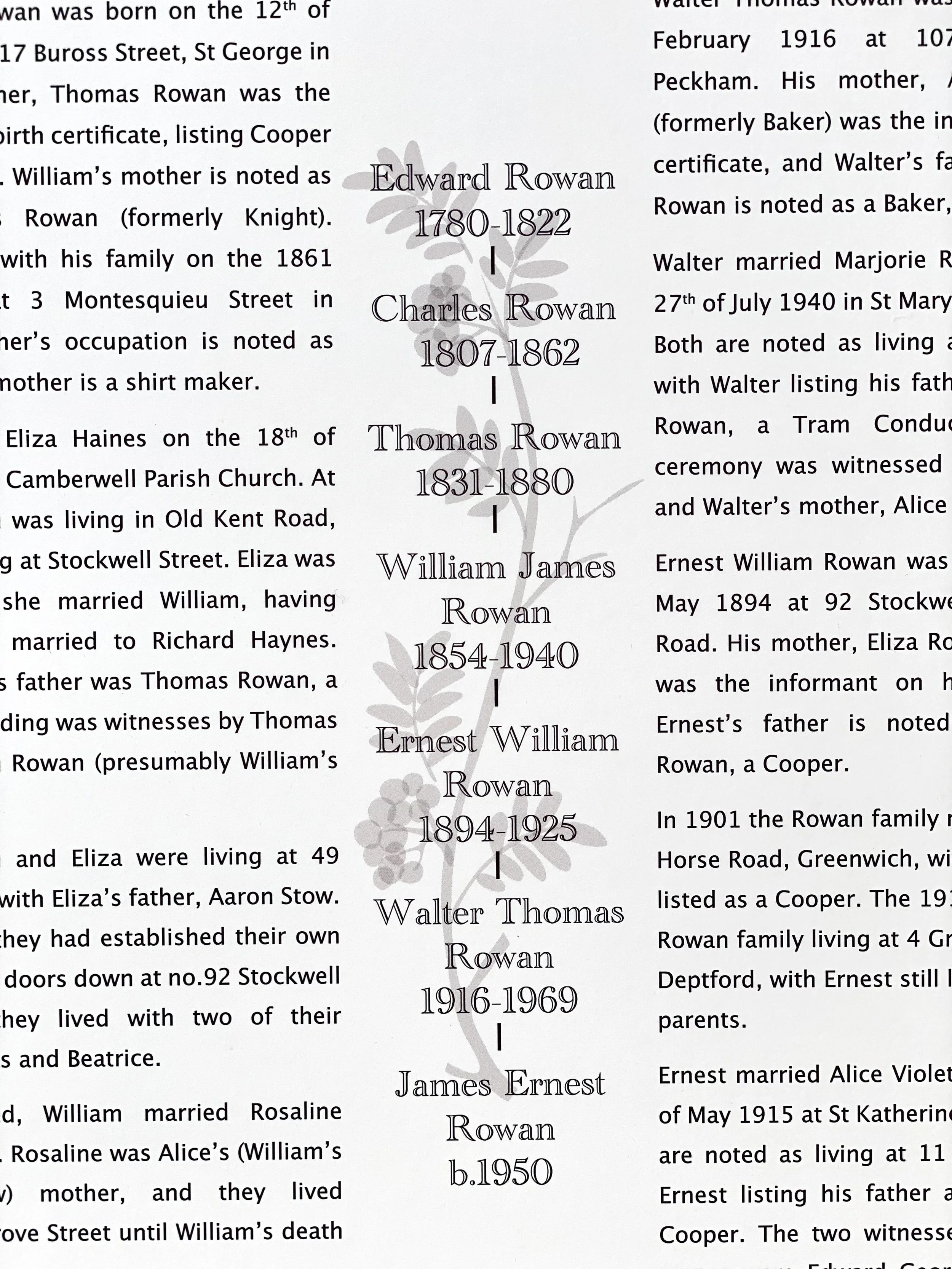 Our prints are intended to give an illustrative overview of the patrilineal or matrilineal line of a chosen surname or family line. The research is not comprehensive, with only civil registration records used to establish the identity of each individual.